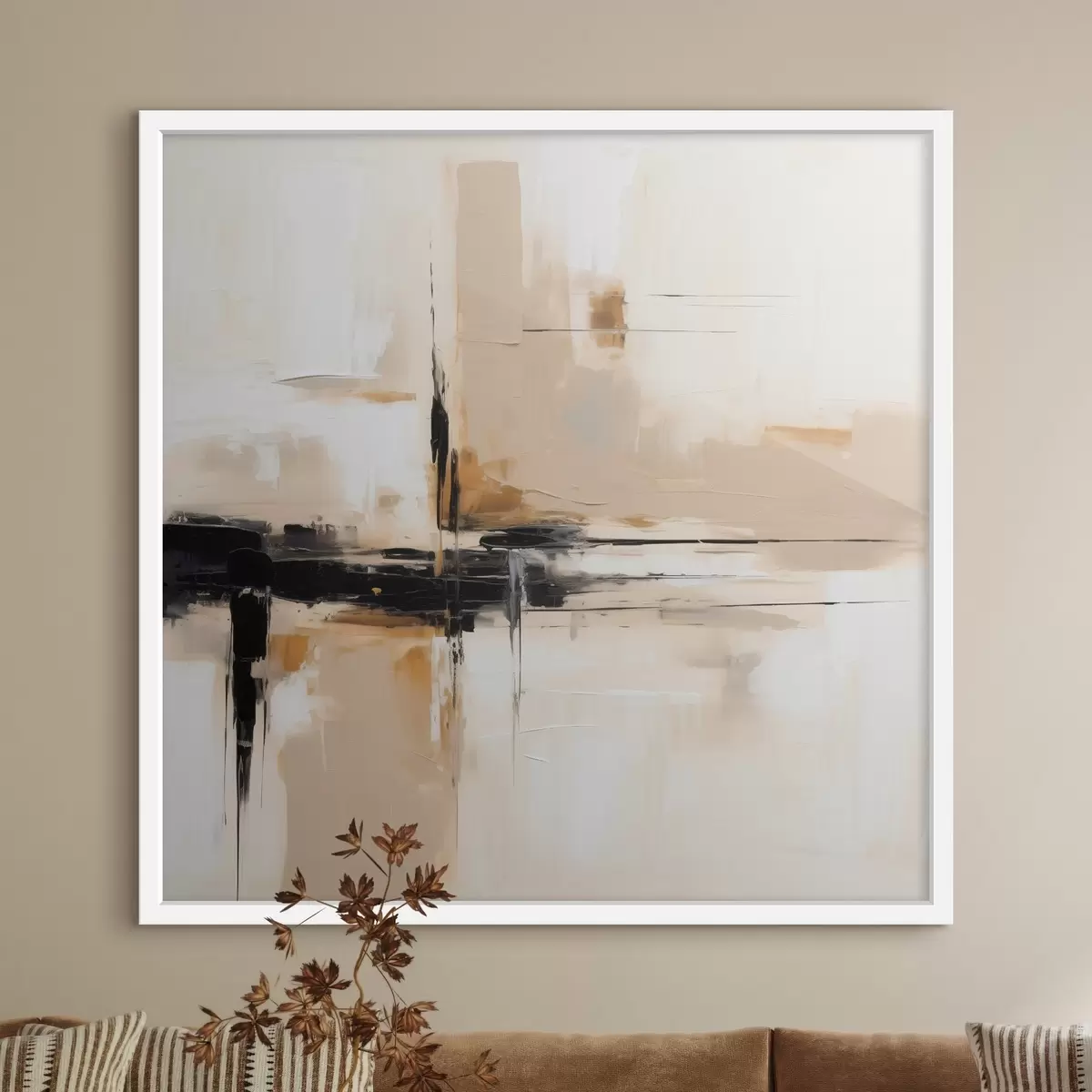 Постер на стіну Бежевий і чорний, вертикальна абстракція в стилі мінімалізму Nr f46326