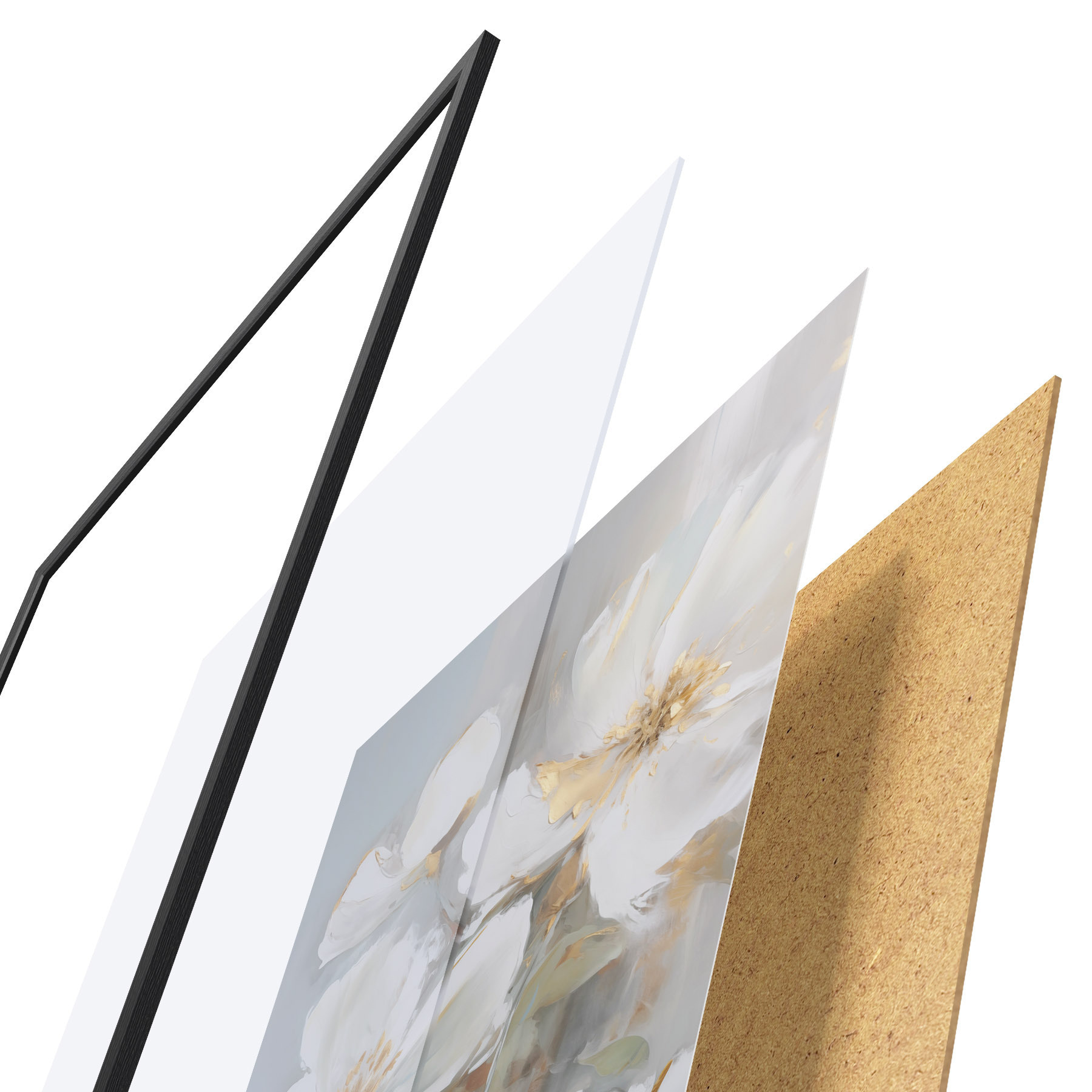 Постер складається з рами, оргскла, надрукованого зображення та підкладки з ДСП. Завдяки кріпленням на звороті плакат можна одразу ж повісити на стіну.