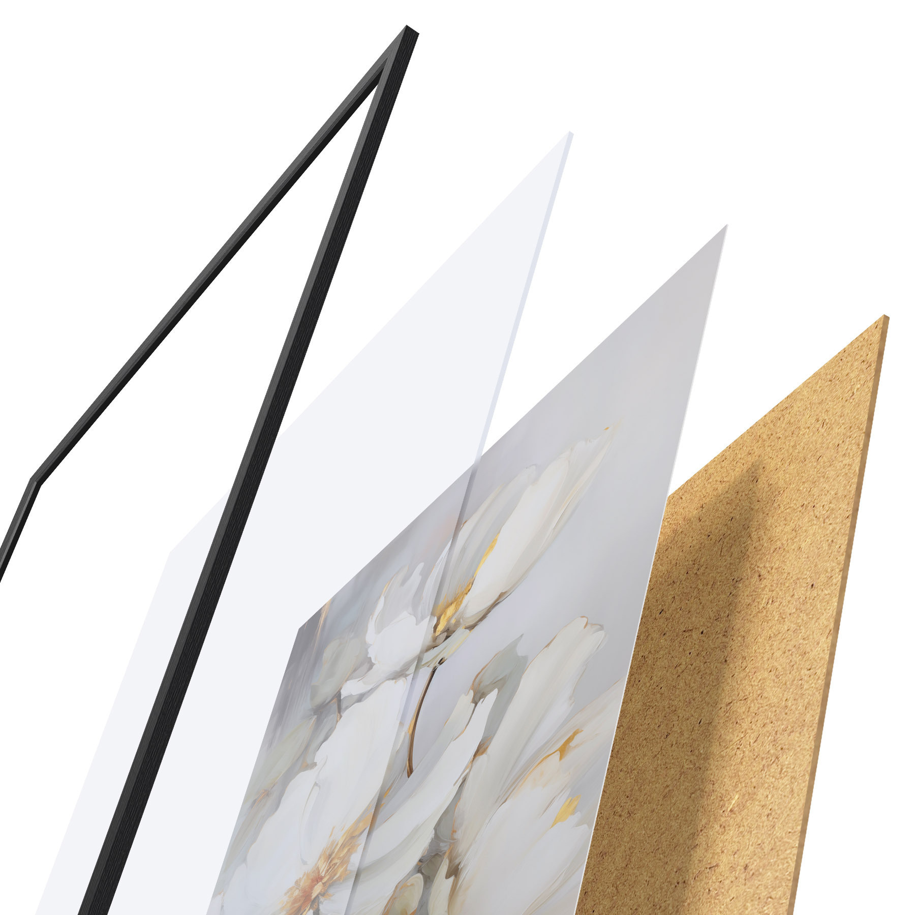 Постер складається з рами, оргскла, надрукованого зображення та підкладки з ДСП. Завдяки кріпленням на звороті плакат можна одразу ж повісити на стіну.