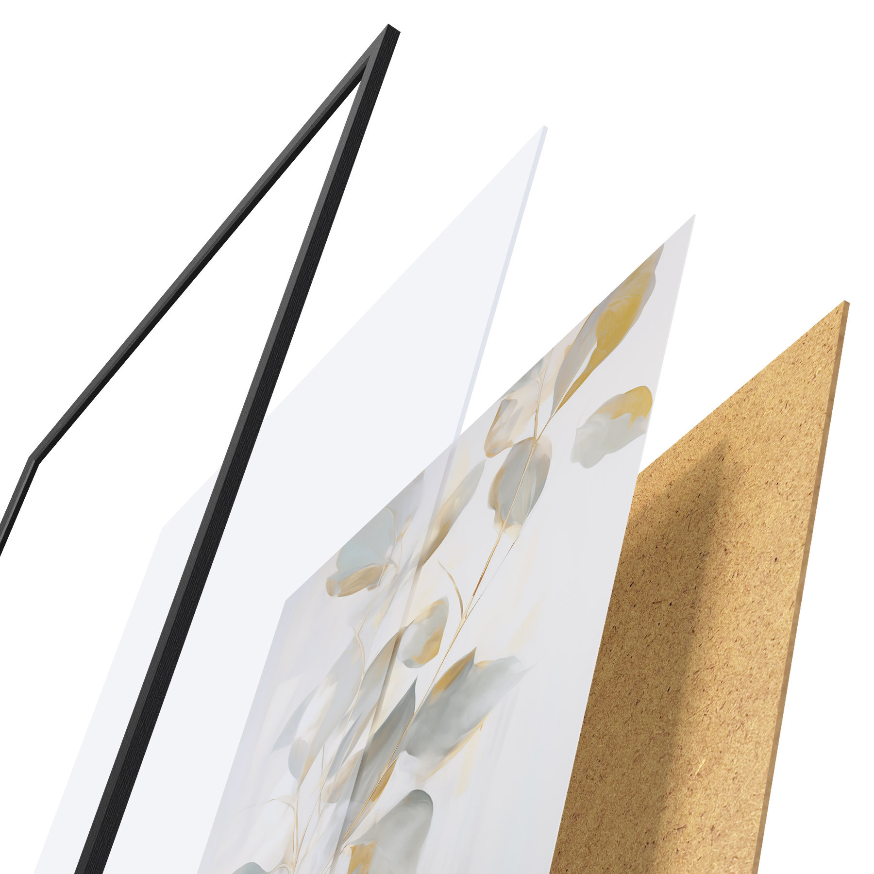 Постер складається з рами, оргскла, надрукованого зображення та підкладки з ДСП. Завдяки кріпленням на звороті плакат можна одразу ж повісити на стіну.