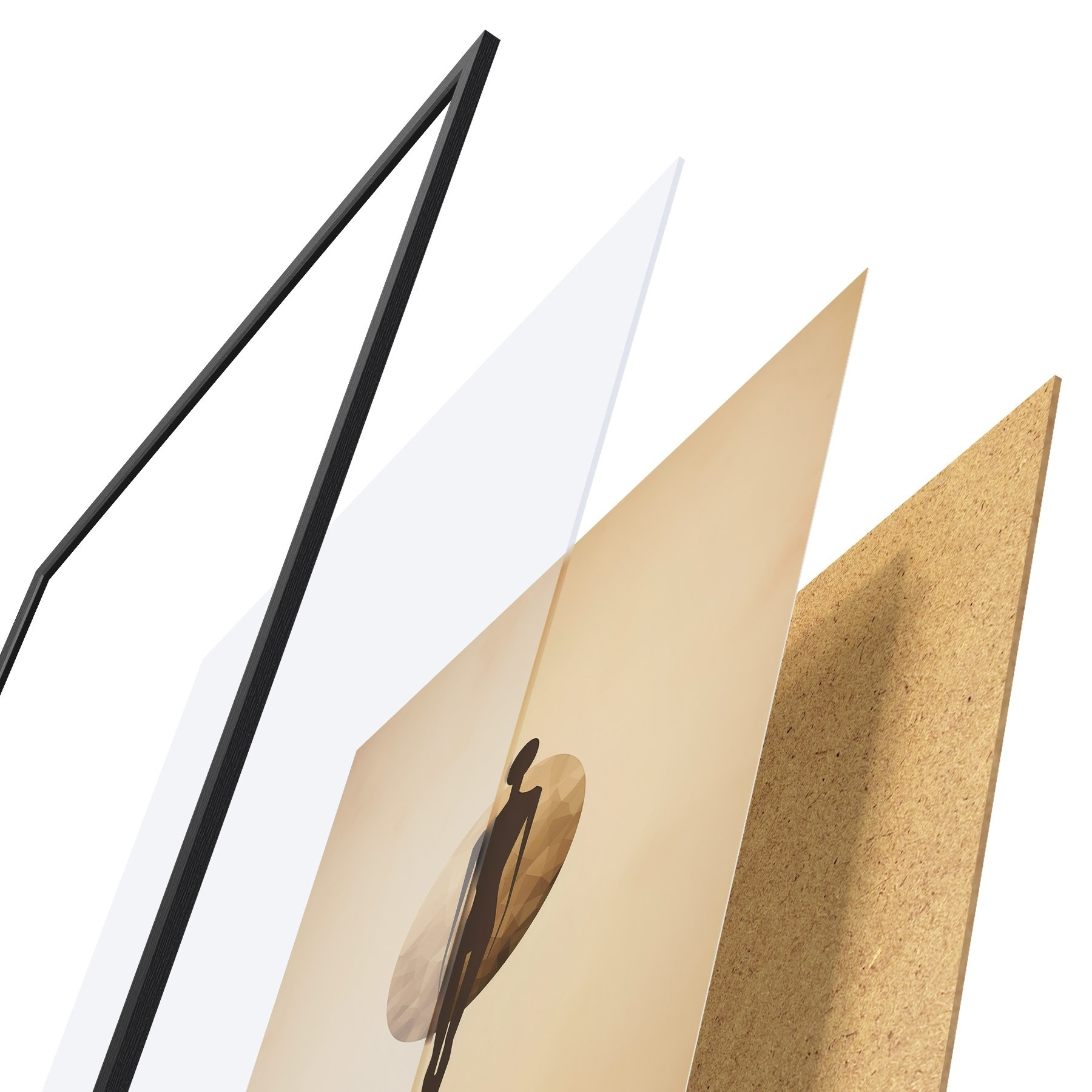Постер складається з рами, оргскла, надрукованого зображення та підкладки з ДСП. Завдяки кріпленням на звороті плакат можна одразу ж повісити на стіну.