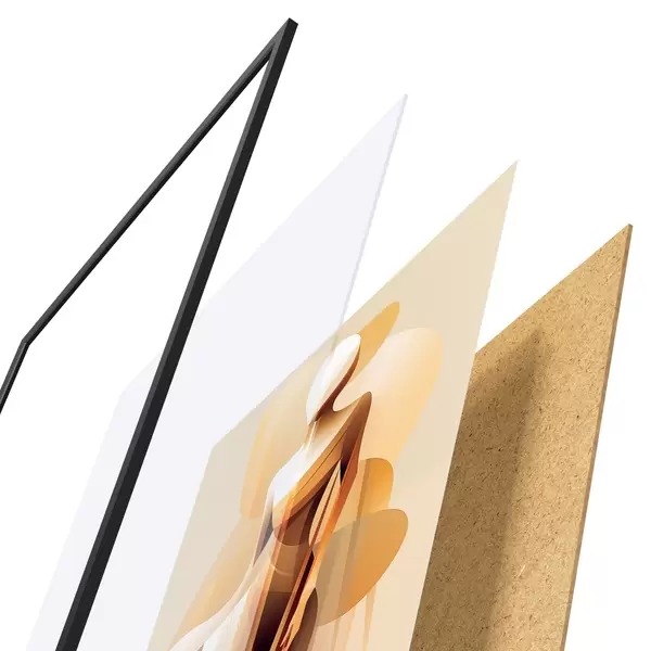 Постер складається з рами, оргскла, надрукованого зображення та підкладки з ДСП. Завдяки кріпленням на звороті плакат можна одразу ж повісити на стіну.