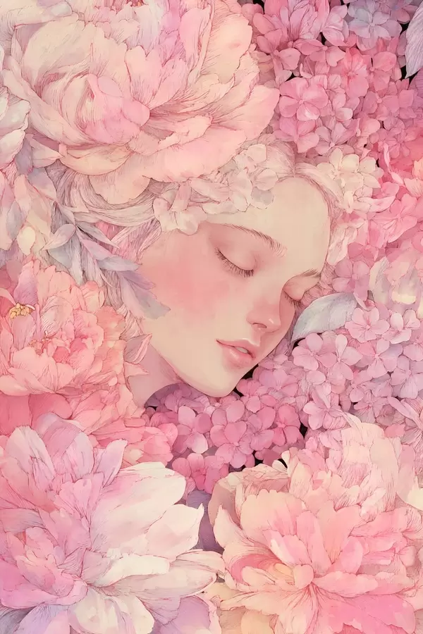 Постер на стіну Обличчя з півоніями Nr f46363