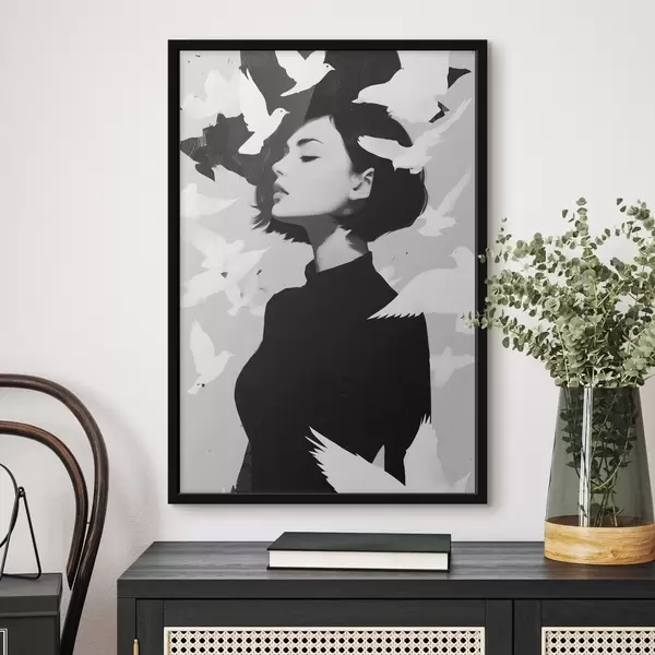Постер на стіну Дівчина з птахами Nr f46369