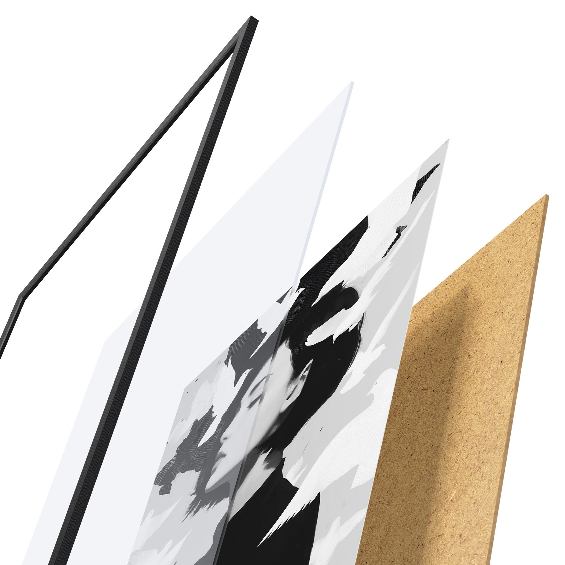 Постер складається з рами, оргскла, надрукованого зображення та підкладки з ДСП. Завдяки кріпленням на звороті плакат можна одразу ж повісити на стіну.