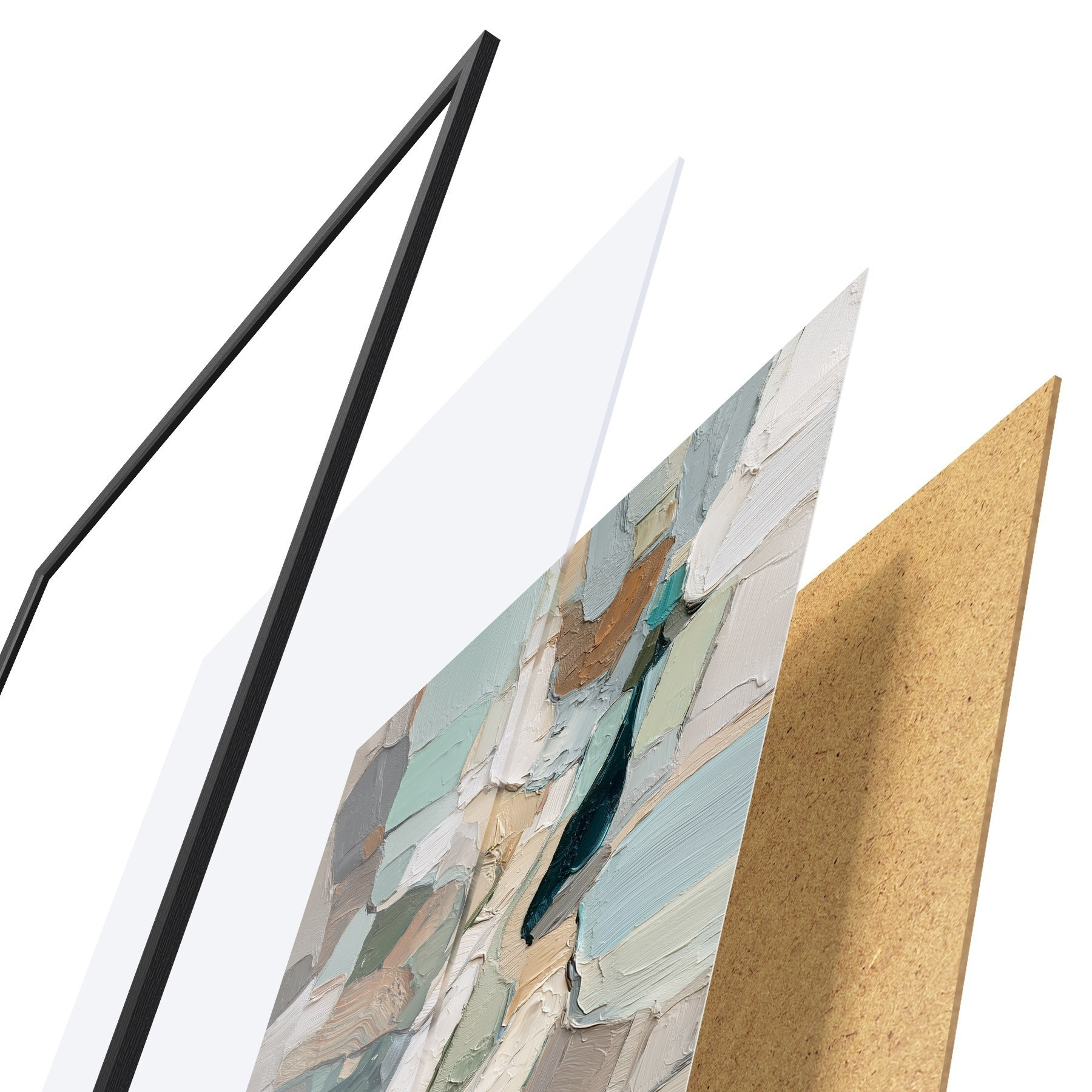 Постер складається з рами, оргскла, надрукованого зображення та підкладки з ДСП. Завдяки кріпленням на звороті плакат можна одразу ж повісити на стіну.