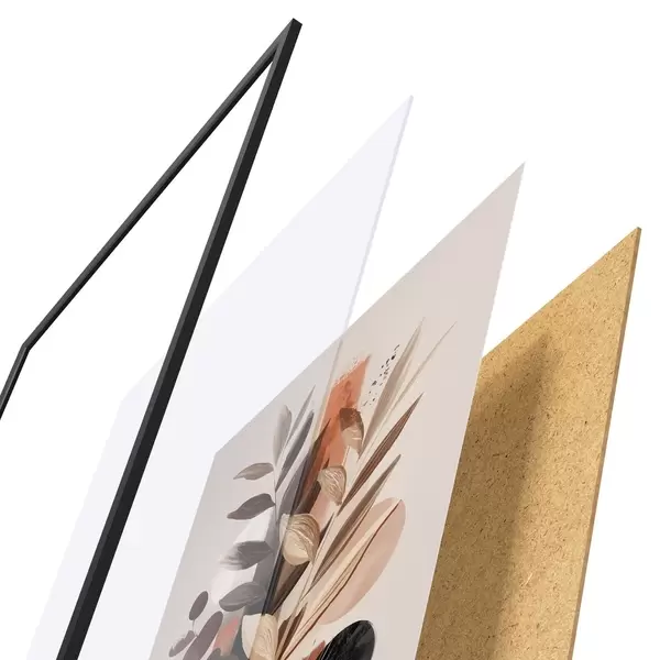 Постер складається з рами, оргскла, надрукованого зображення та підкладки з ДСП. Завдяки кріпленням на звороті плакат можна одразу ж повісити на стіну.