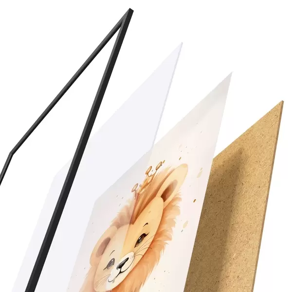 Постер складається з рами, оргскла, надрукованого зображення та підкладки з ДСП. Завдяки кріпленням на звороті плакат можна одразу ж повісити на стіну.