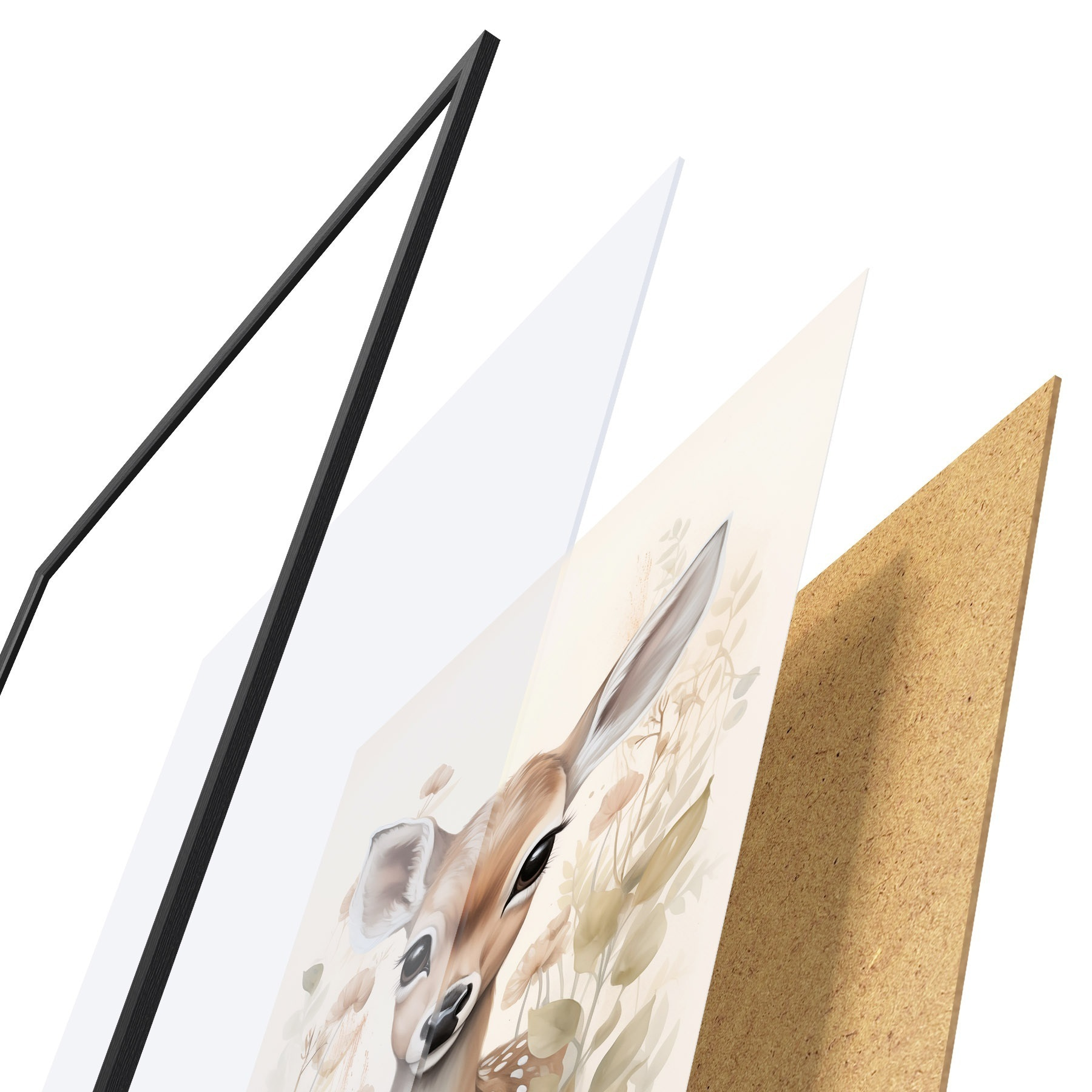 Постер складається з рами, оргскла, надрукованого зображення та підкладки з ДСП. Завдяки кріпленням на звороті плакат можна одразу ж повісити на стіну.