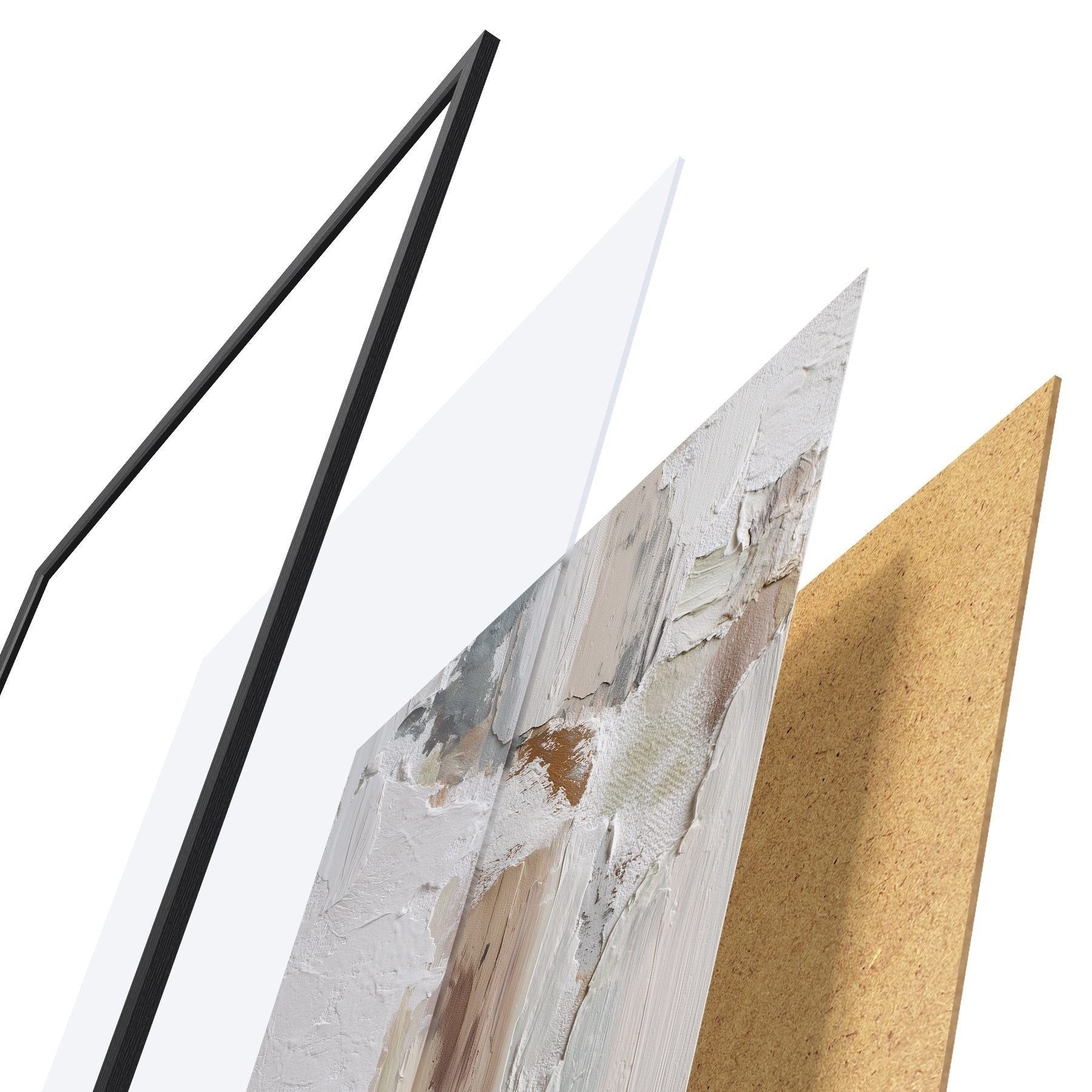 Постер складається з рами, оргскла, надрукованого зображення та підкладки з ДСП. Завдяки кріпленням на звороті плакат можна одразу ж повісити на стіну.