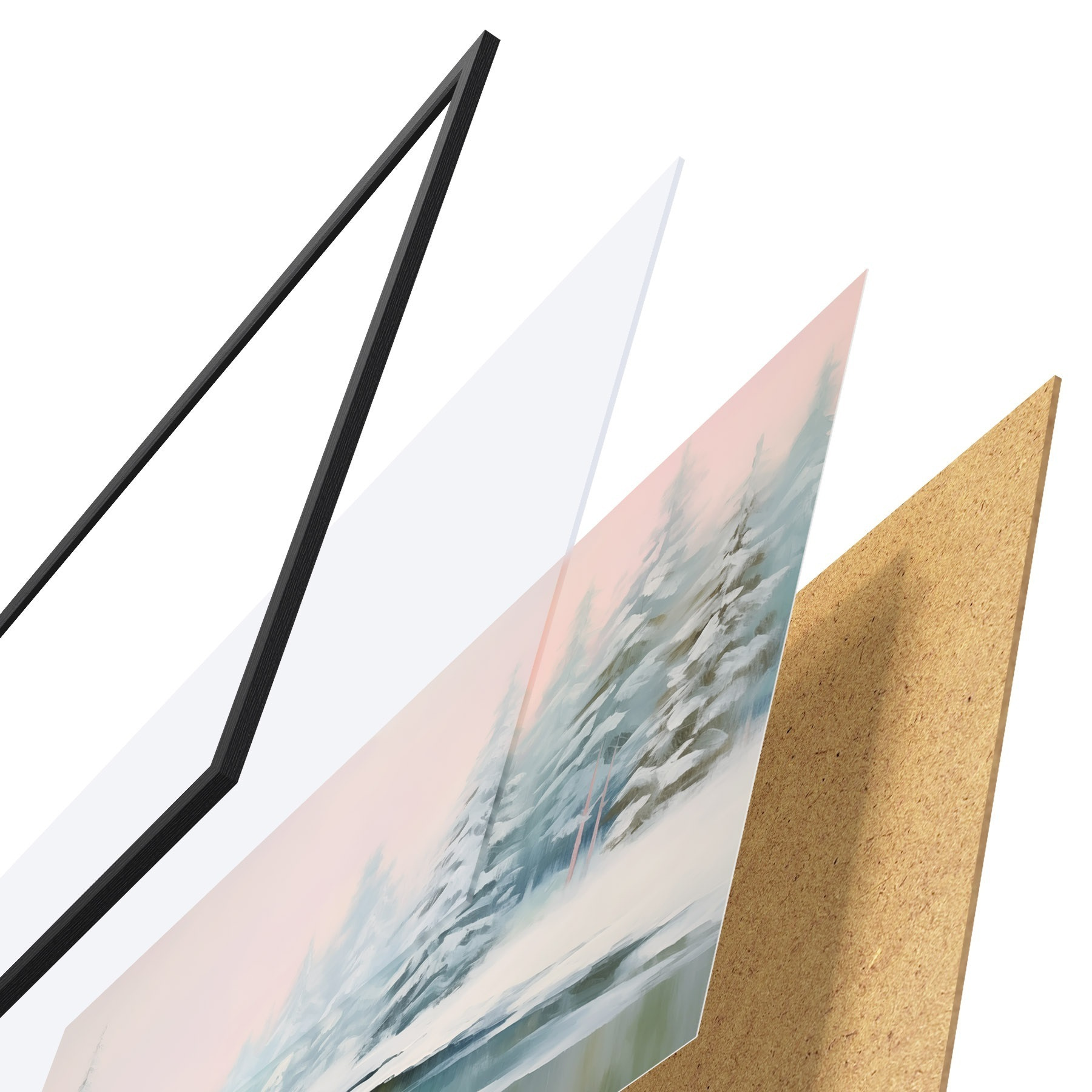 Постер складається з рами, оргскла, надрукованого зображення та підкладки з ДСП. Завдяки кріпленням на звороті плакат можна одразу ж повісити на стіну.