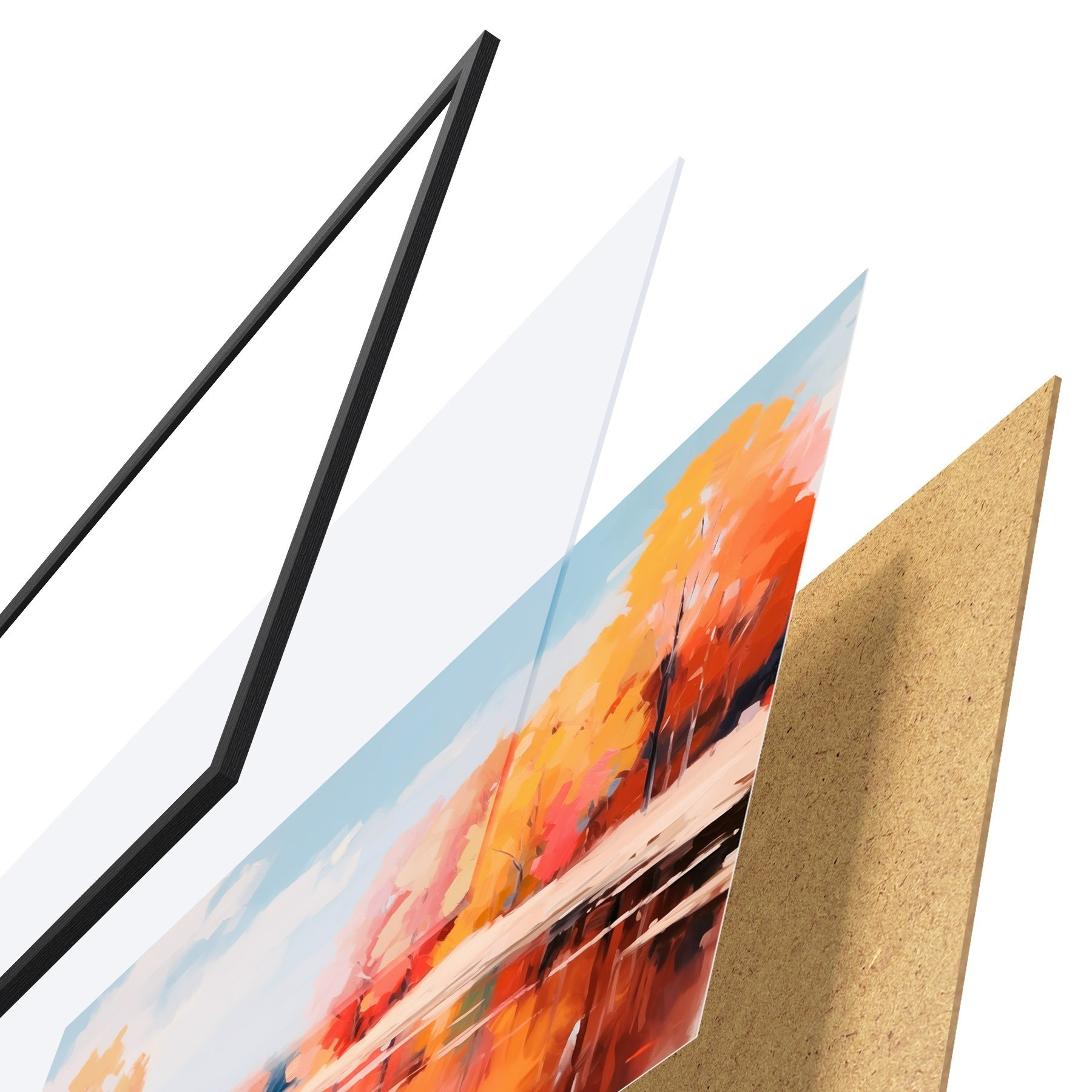 Постер складається з рами, оргскла, надрукованого зображення та підкладки з ДСП. Завдяки кріпленням на звороті плакат можна одразу ж повісити на стіну.