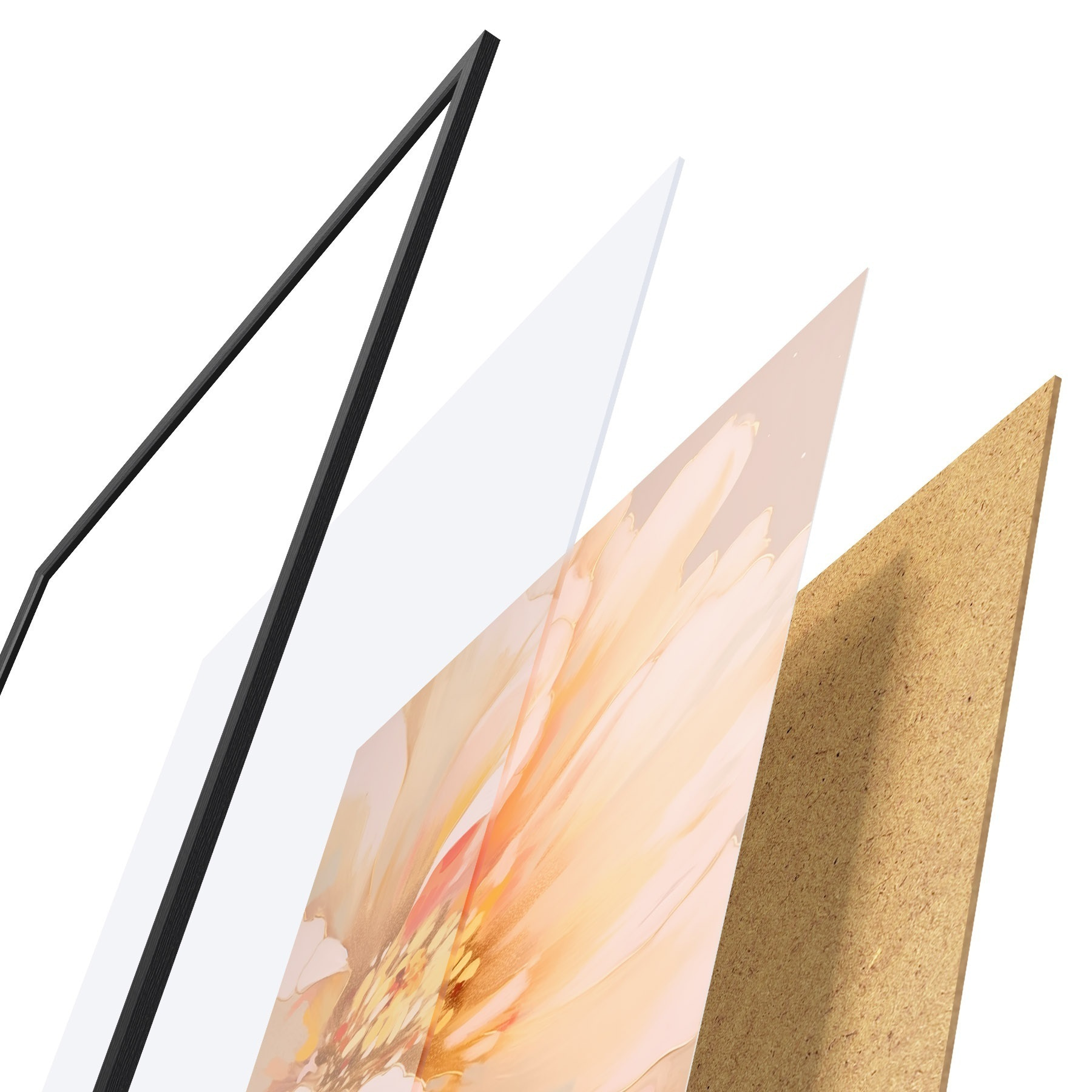 Постер складається з рами, оргскла, надрукованого зображення та підкладки з ДСП. Завдяки кріпленням на звороті плакат можна одразу ж повісити на стіну.