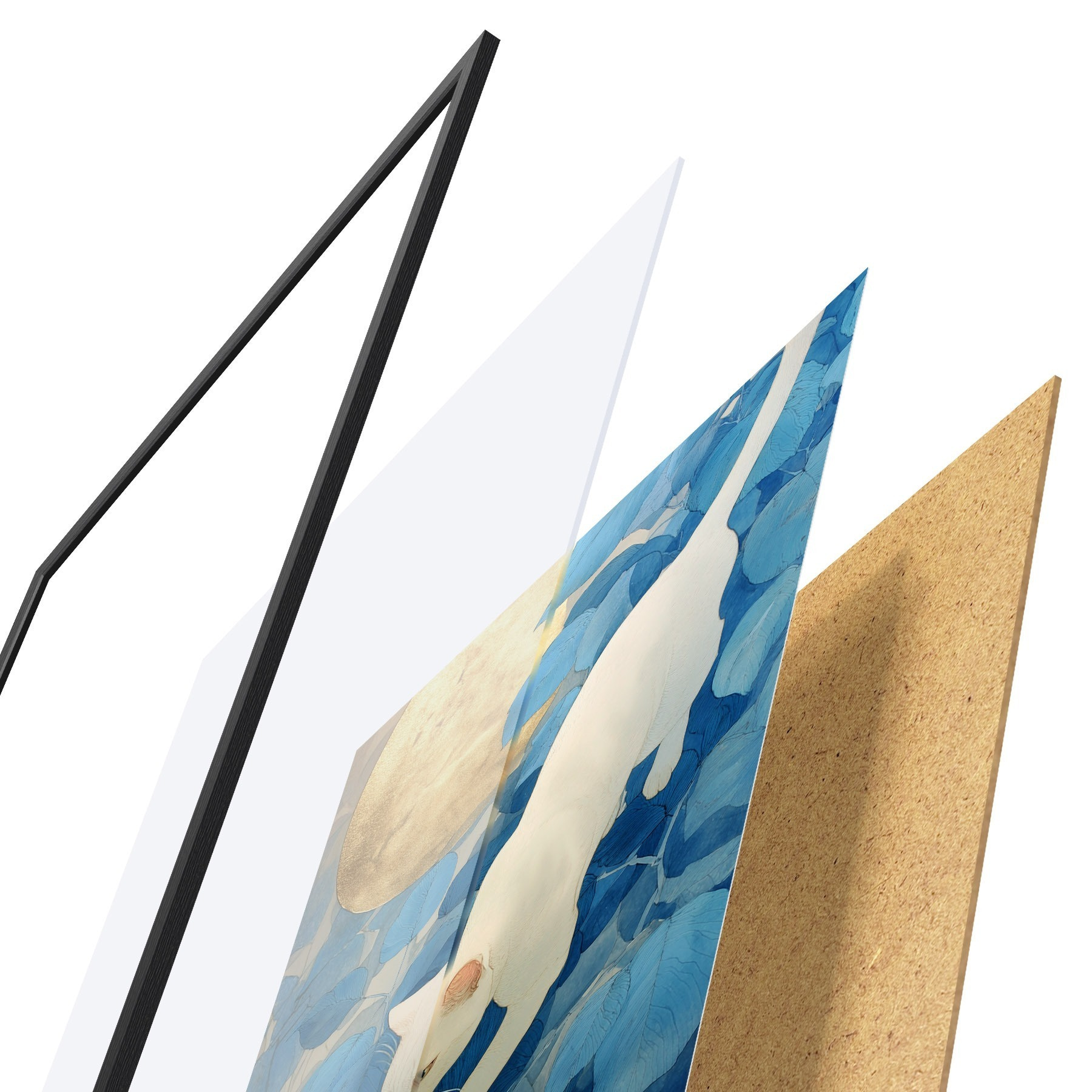 Постер складається з рами, оргскла, надрукованого зображення та підкладки з ДСП. Завдяки кріпленням на звороті плакат можна одразу ж повісити на стіну.