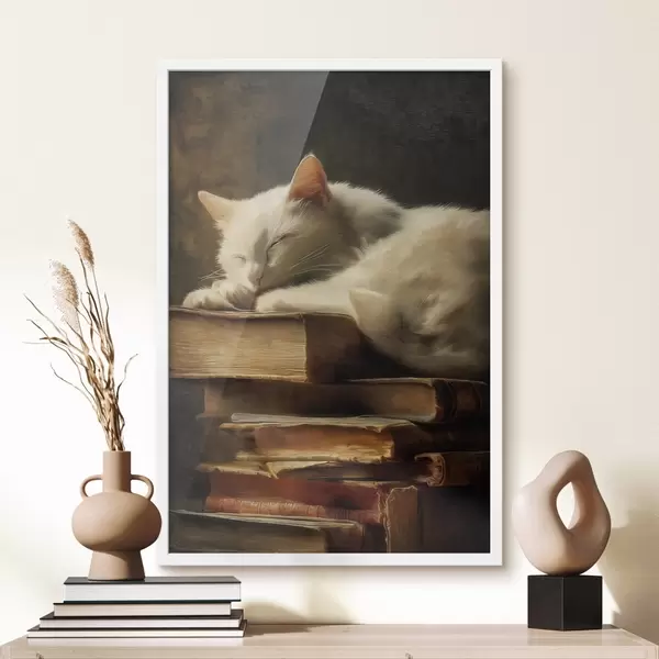 Постер на стіну Кішка на книгах Nr f46428