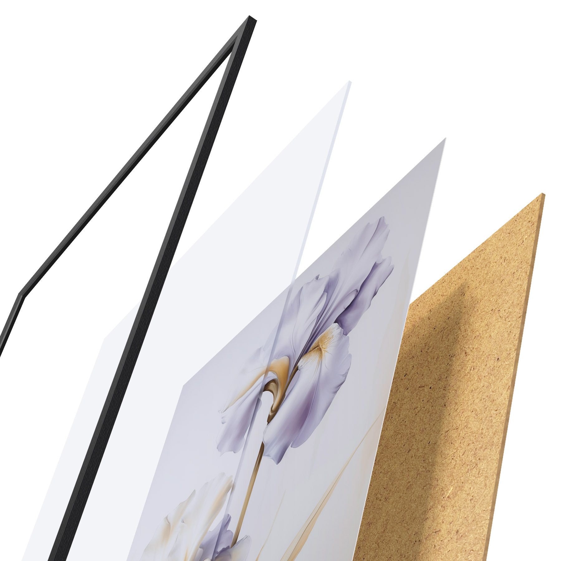 Постер складається з рами, оргскла, надрукованого зображення та підкладки з ДСП. Завдяки кріпленням на звороті плакат можна одразу ж повісити на стіну.