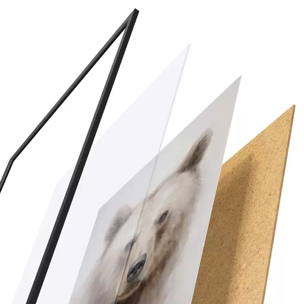 Постер складається з рами, оргскла, надрукованого зображення та підкладки з ДСП. Завдяки кріпленням на звороті плакат можна одразу ж повісити на стіну.