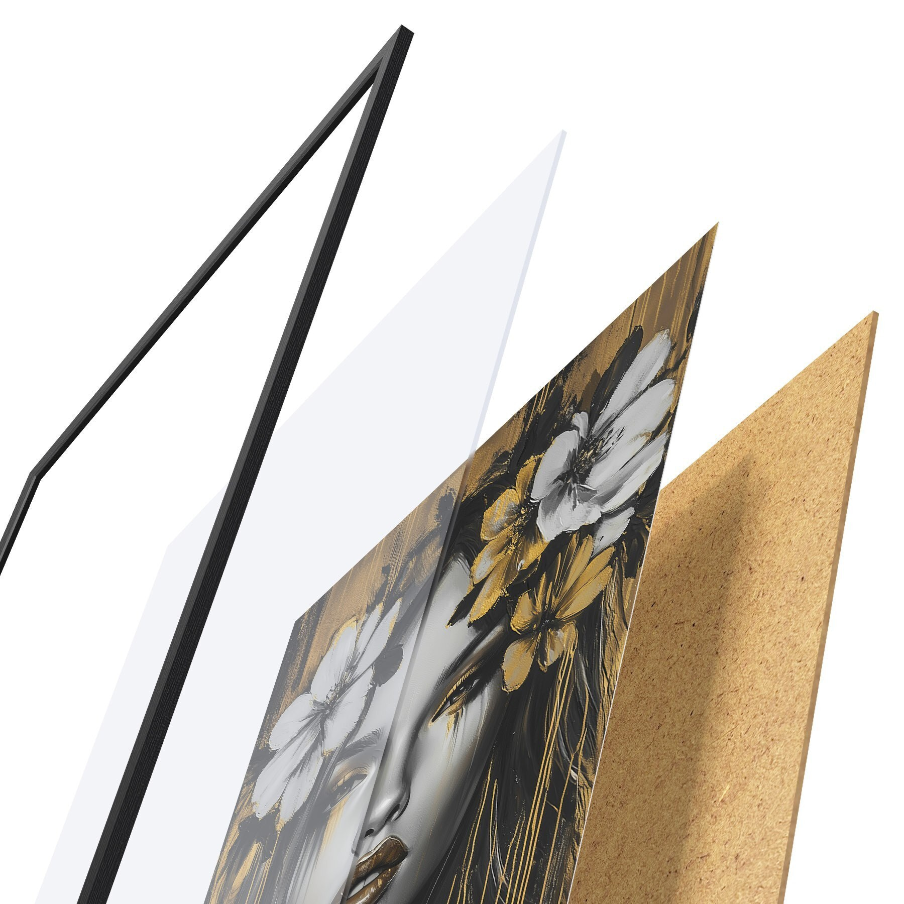 Постер складається з рами, оргскла, надрукованого зображення та підкладки з ДСП. Завдяки кріпленням на звороті плакат можна одразу ж повісити на стіну.