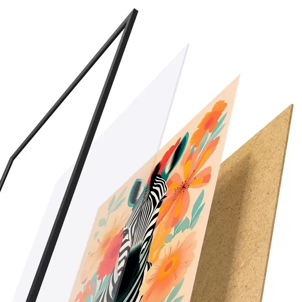 Постер складається з рами, оргскла, надрукованого зображення та підкладки з ДСП. Завдяки кріпленням на звороті плакат можна одразу ж повісити на стіну.