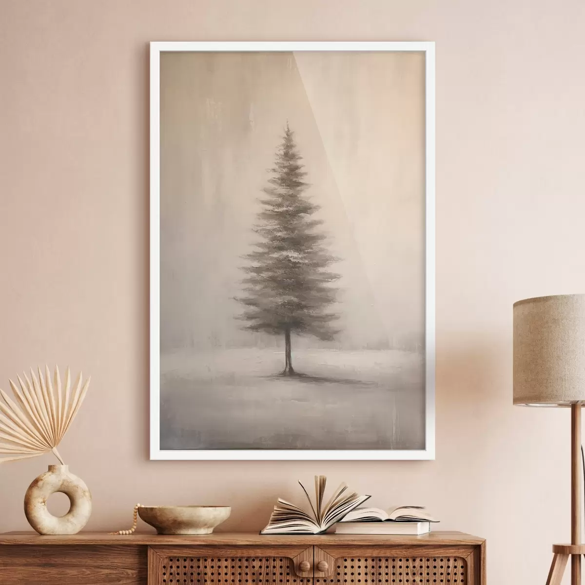 Постер на стіну Монохромна ялинка. Мінімалістичний зимовий пейзаж Nr f46465