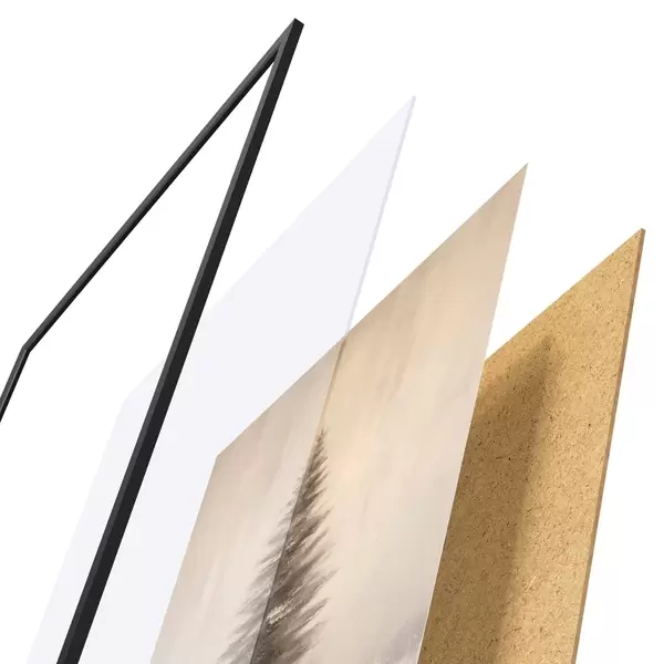 Постер складається з рами, оргскла, надрукованого зображення та підкладки з ДСП. Завдяки кріпленням на звороті плакат можна одразу ж повісити на стіну.