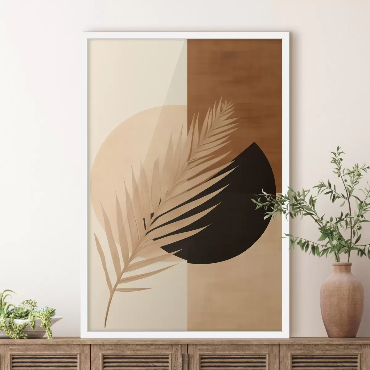 Постер на стіну Пальмове листя на теракоті та кремовій геометрії Nr f46490