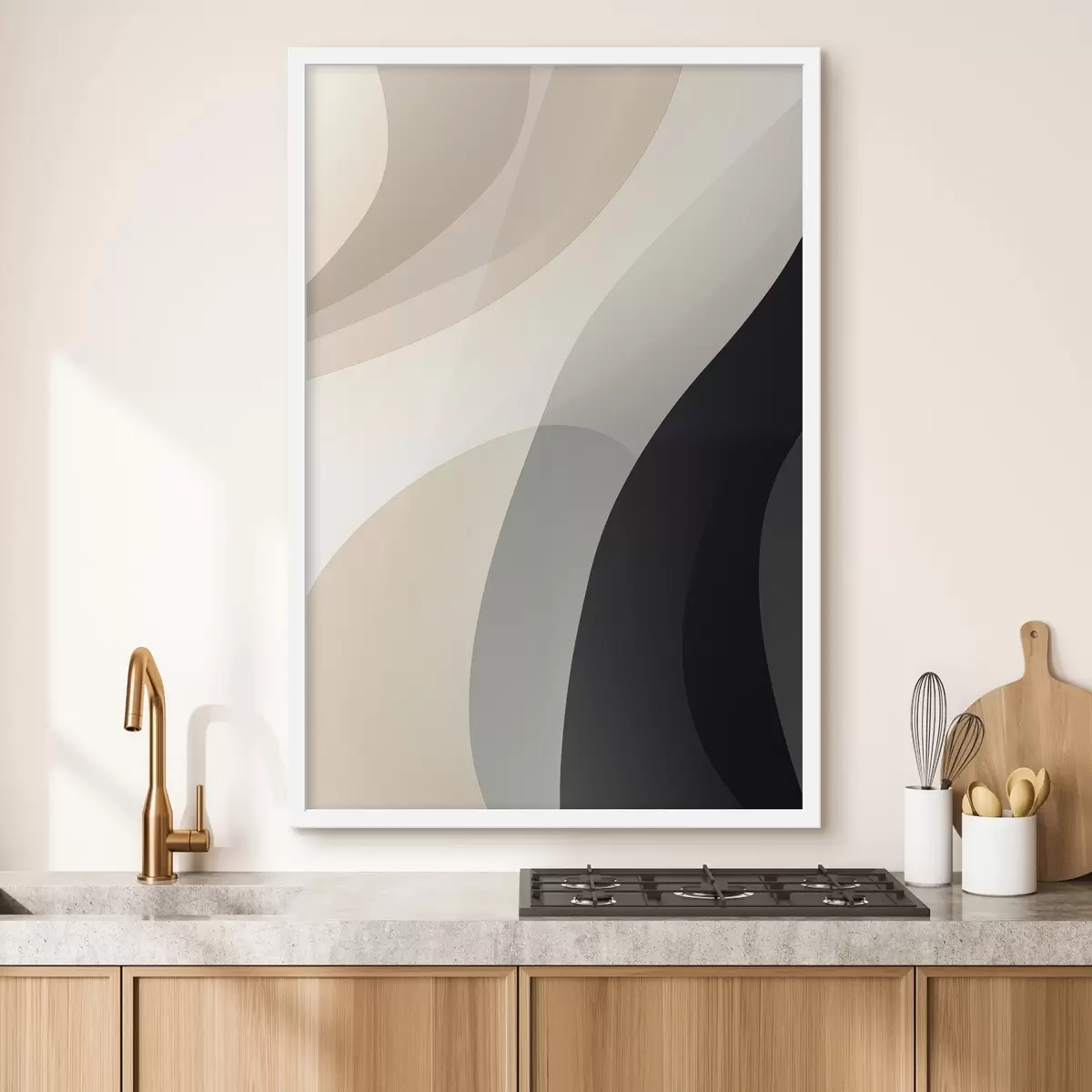 Постер на стіну Органічні хвильові форми в теплих бежевих і вугільних тонах Nr f46494