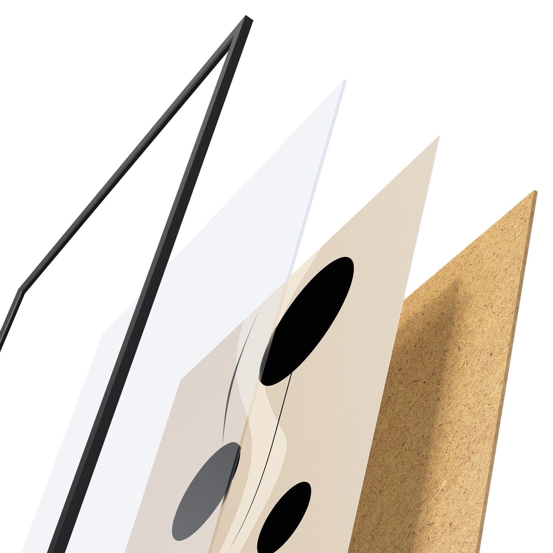 Постер складається з рами, оргскла, надрукованого зображення та підкладки з ДСП. Завдяки кріпленням на звороті плакат можна одразу ж повісити на стіну.