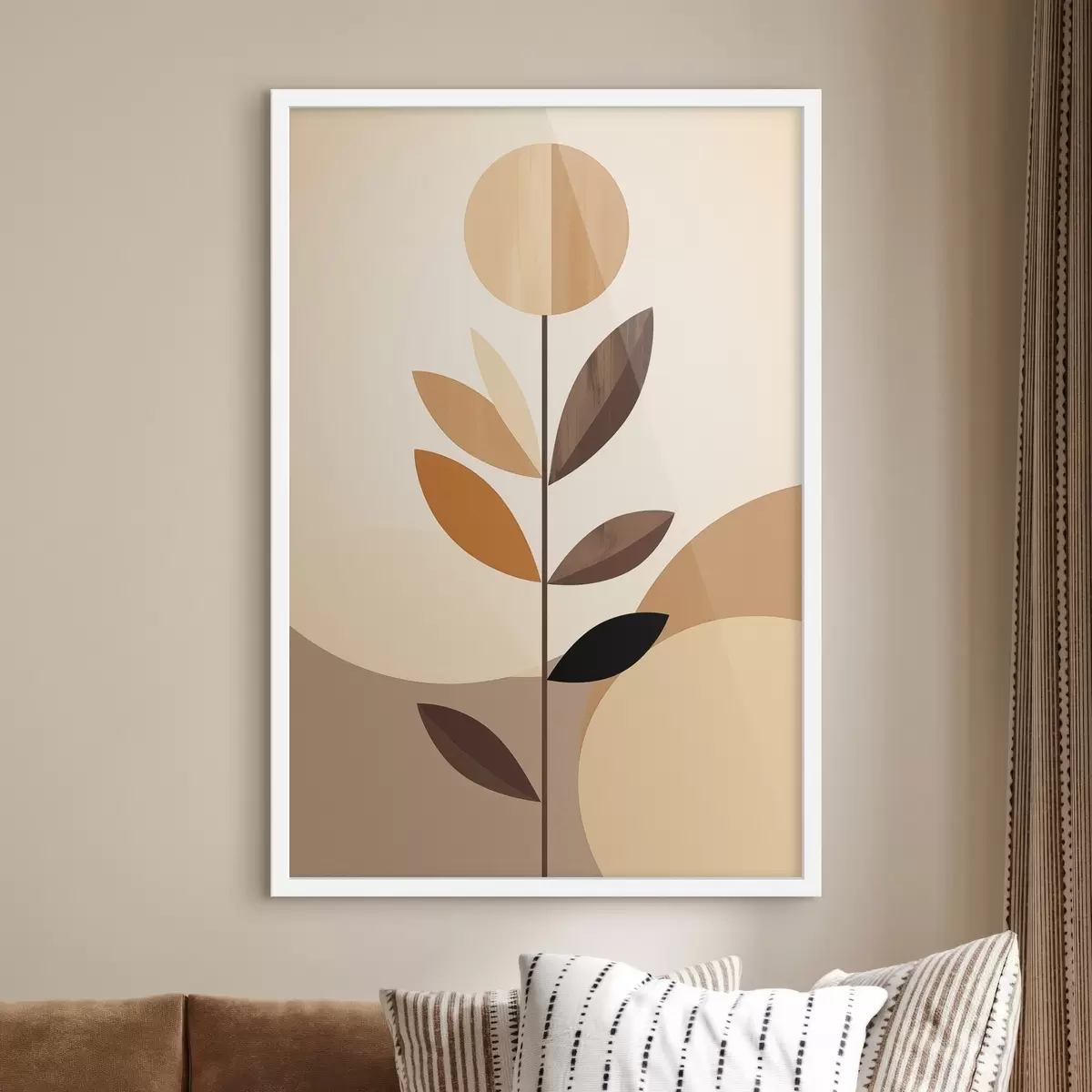 Постер на стіну Стилізована квітка з геометричними листям у теплих тонах Nr f46500