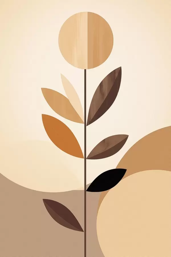 Постер на стіну Стилізована квітка з геометричними листям у теплих тонах Nr f46500