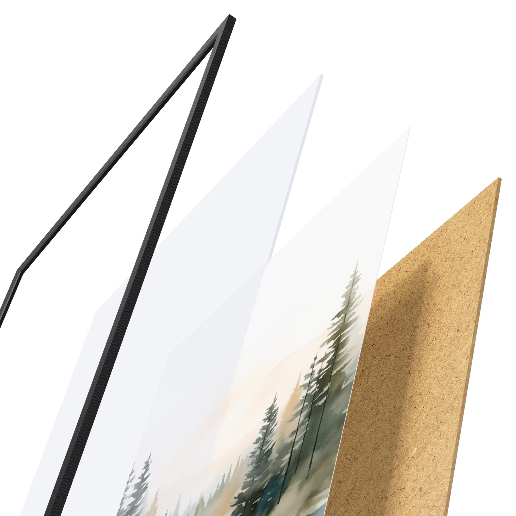 Постер складається з рами, оргскла, надрукованого зображення та підкладки з ДСП. Завдяки кріпленням на звороті плакат можна одразу ж повісити на стіну.
