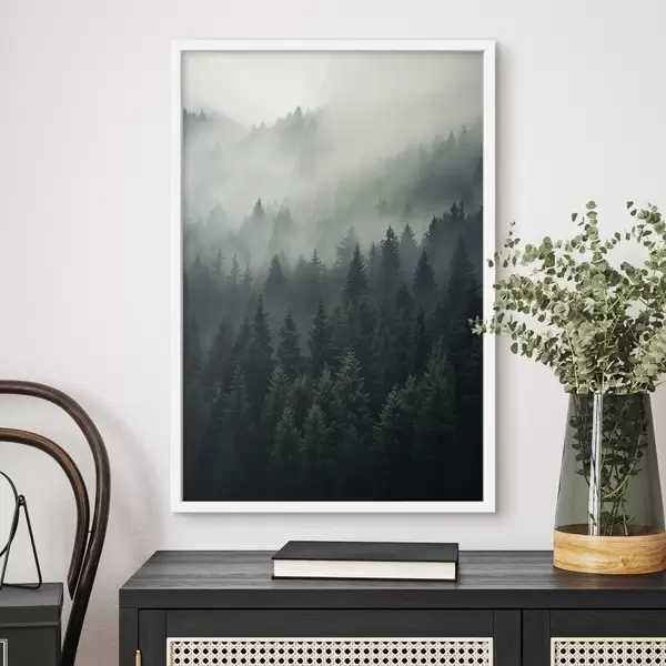 Постер на стіну Туман, що котиться над густим вічнозеленим лісом Nr f46512
