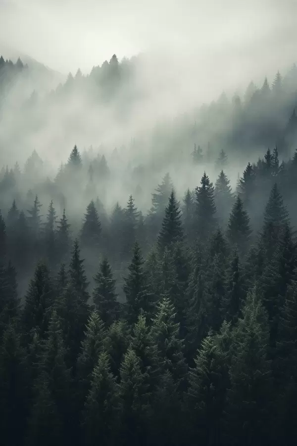 Постер на стіну Туман, що котиться над густим вічнозеленим лісом Nr f46512