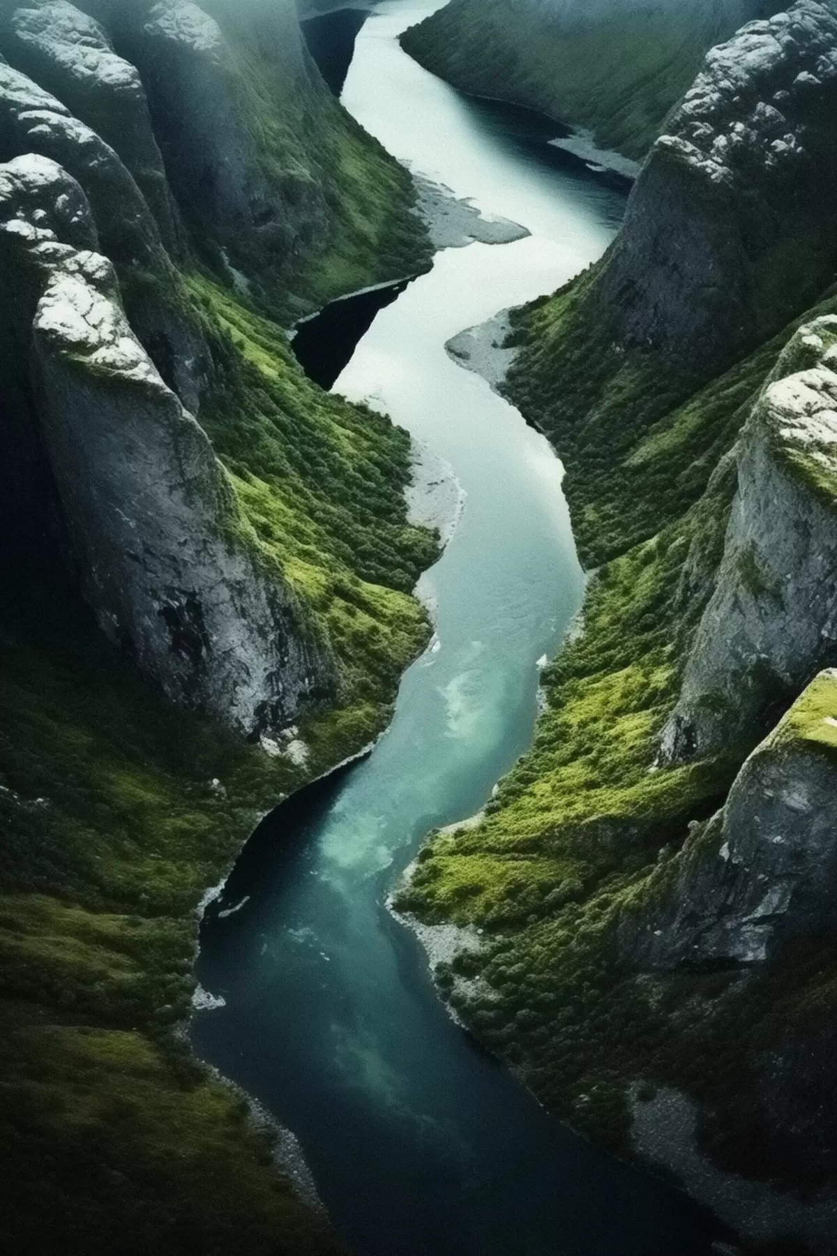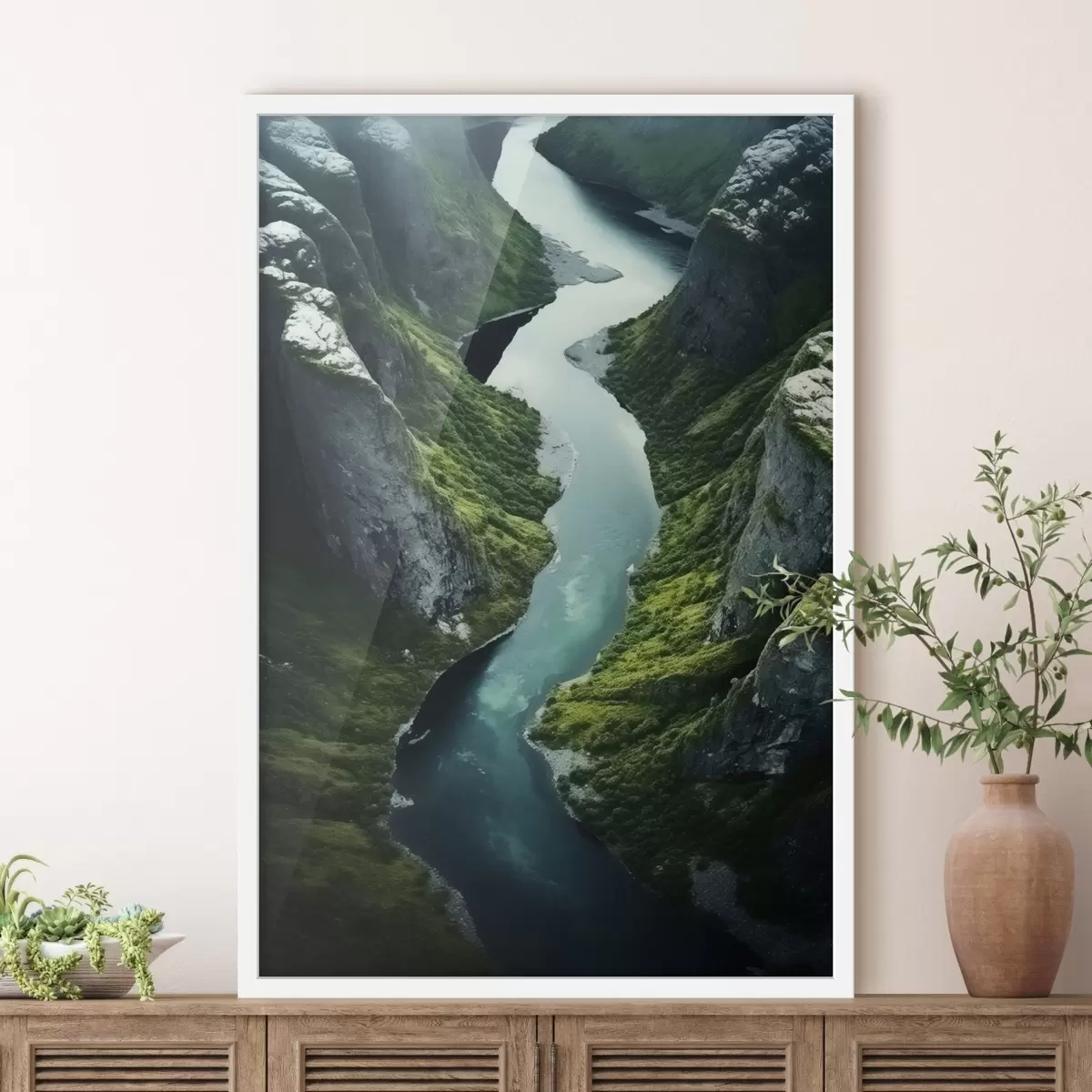 Постер на стіну Звивиста річка між скелями, вид з повітря Nr f46521