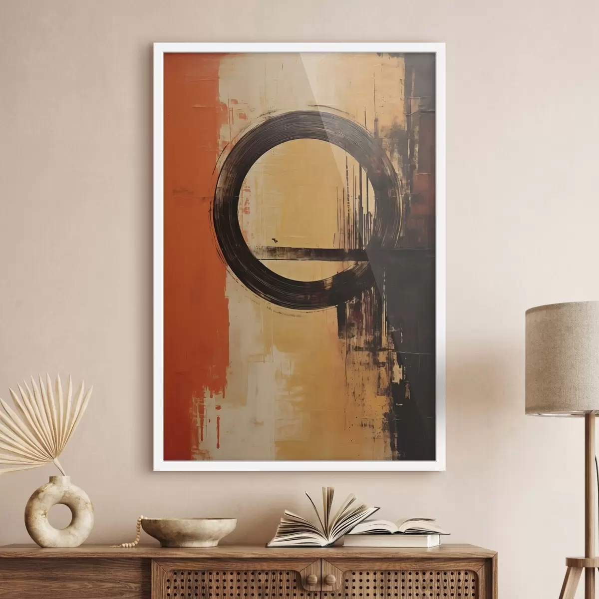 Постер на стіну Абстрактний малюнок з чорним кільцем на теракотово-піщаному тлі Nr f46529