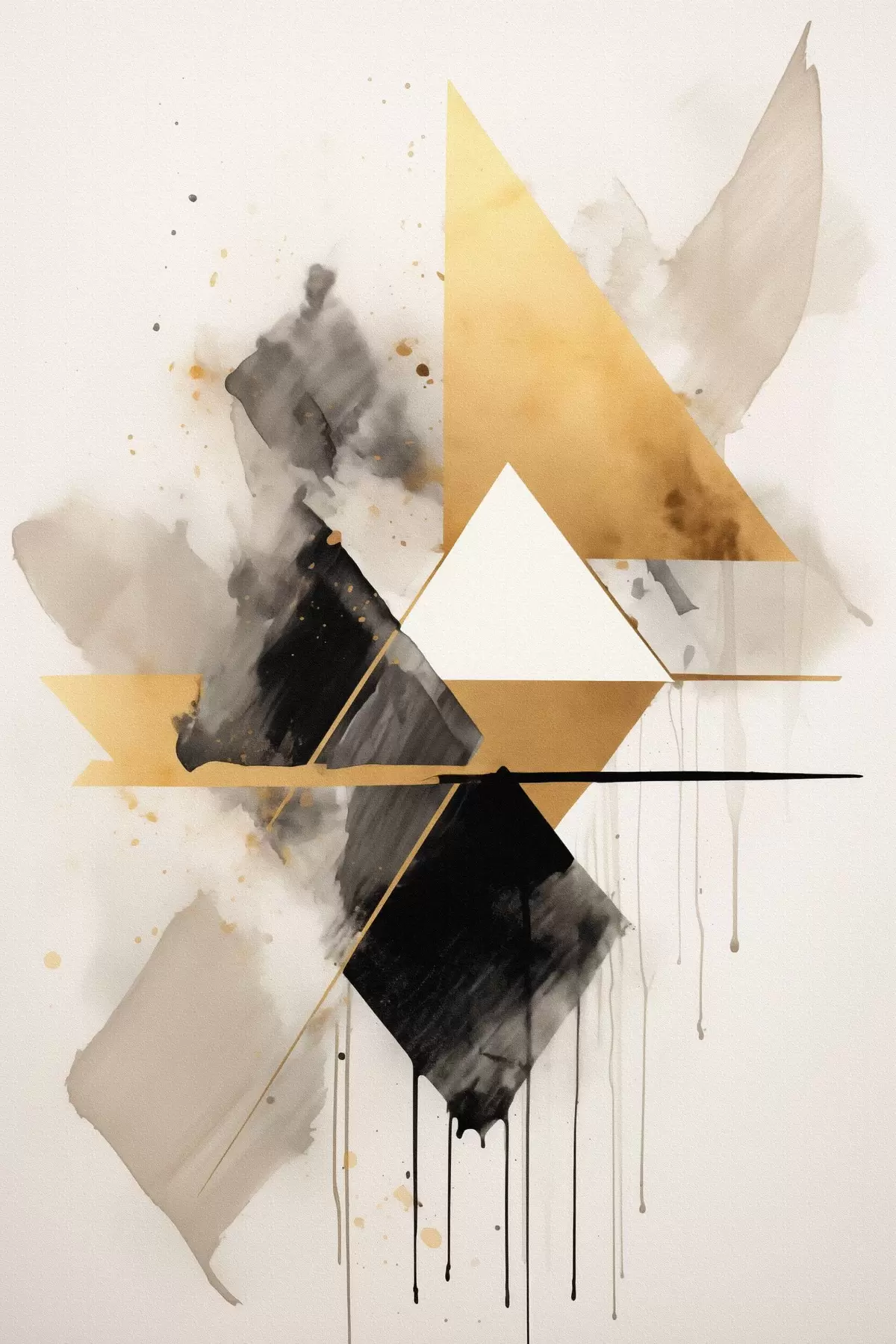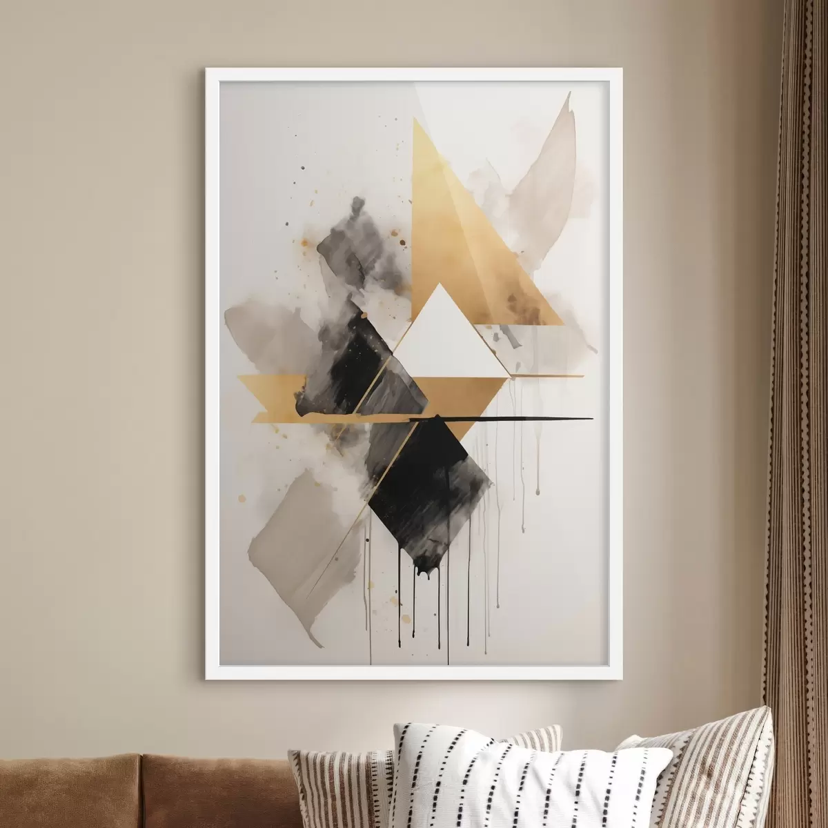 Постер на стіну Геометрія з трикутниками та чорним ромбом, бежеві штрихи Nr f46539