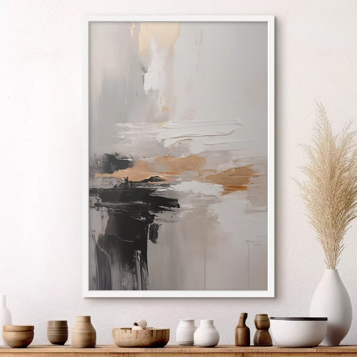 Постер на стіну Мазки в нюдових тонах з контрастним чорним і охристим шаром Nr f46544
