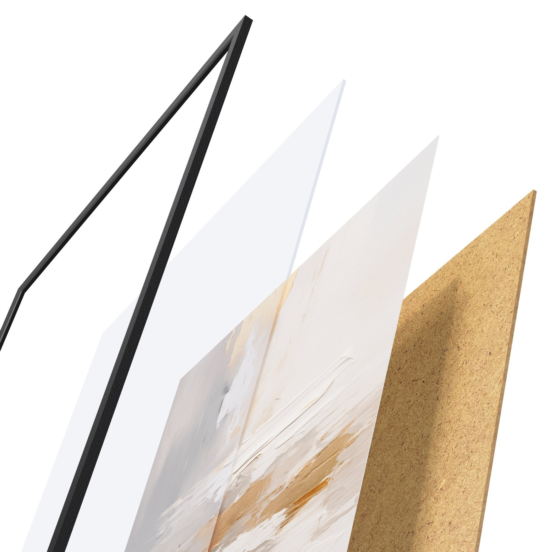 Постер складається з рами, оргскла, надрукованого зображення та підкладки з ДСП. Завдяки кріпленням на звороті плакат можна одразу ж повісити на стіну.