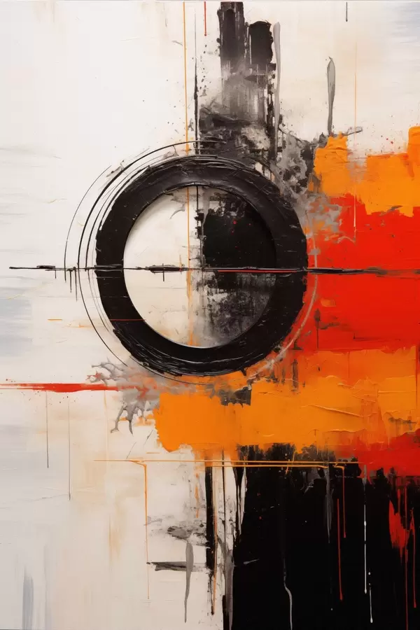 Постер на стіну Чорне коло на білому тлі, помаранчеві штрихи та бризки Nr f46549