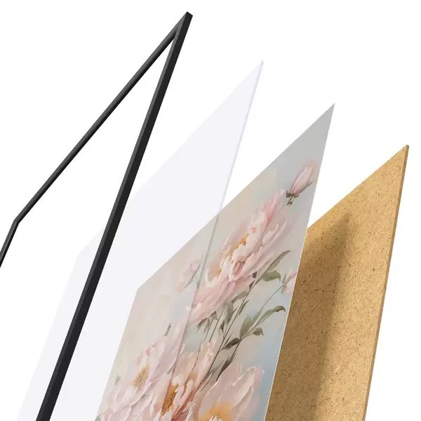 Постер складається з рами, оргскла, надрукованого зображення та підкладки з ДСП. Завдяки кріпленням на звороті плакат можна одразу ж повісити на стіну.
