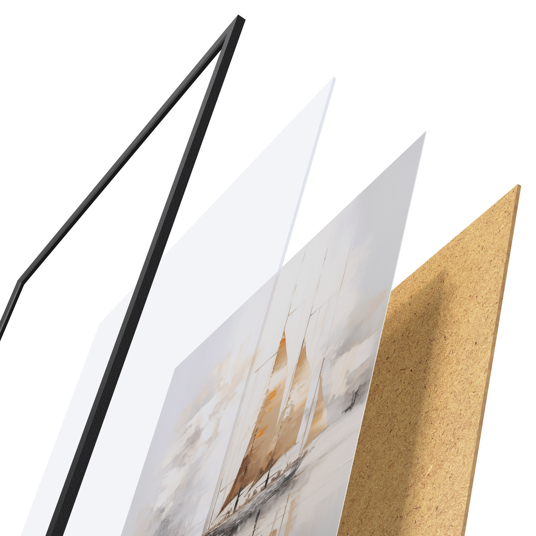Постер складається з рами, оргскла, надрукованого зображення та підкладки з ДСП. Завдяки кріпленням на звороті плакат можна одразу ж повісити на стіну.