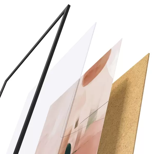 Постер складається з рами, оргскла, надрукованого зображення та підкладки з ДСП. Завдяки кріпленням на звороті плакат можна одразу ж повісити на стіну.
