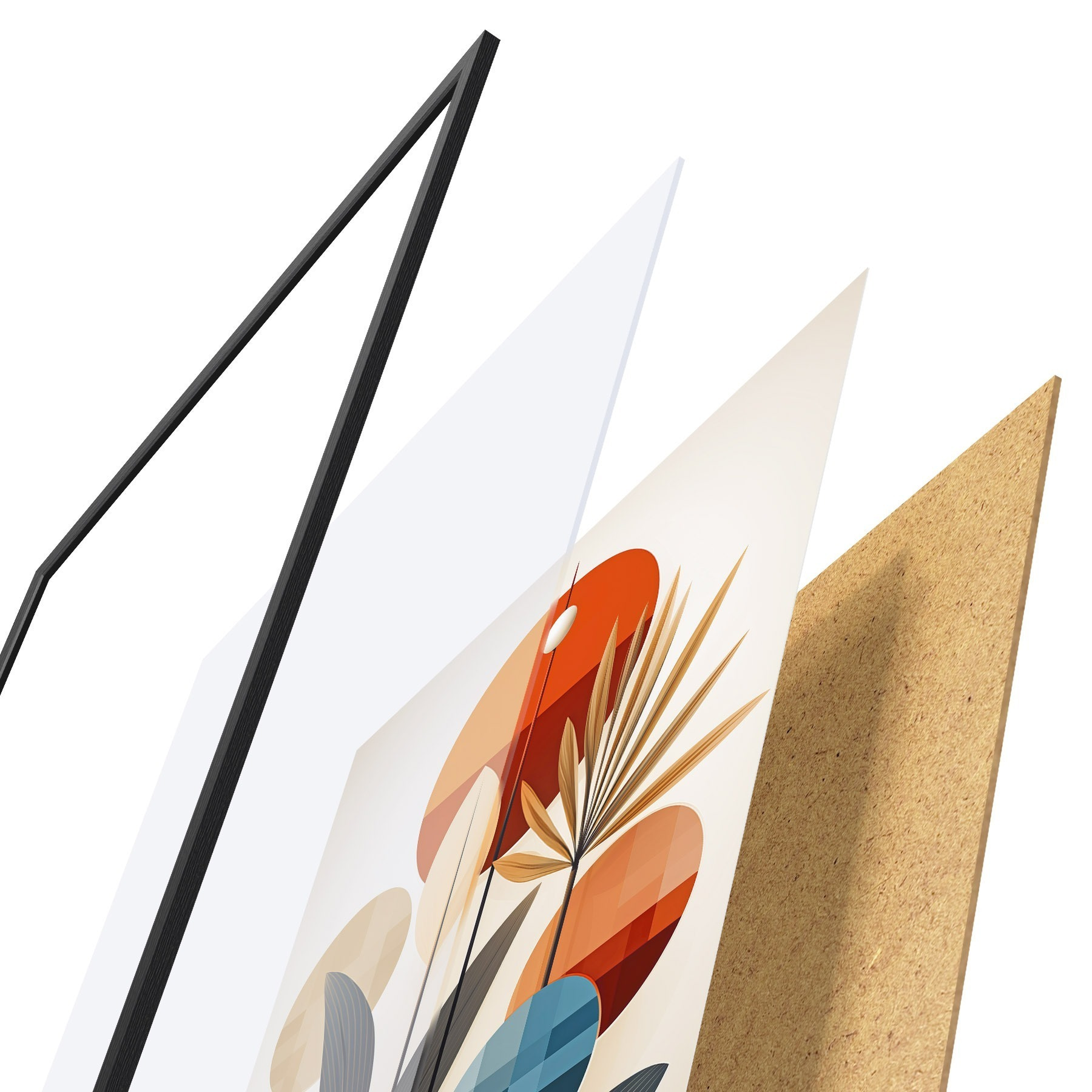 Постер складається з рами, оргскла, надрукованого зображення та підкладки з ДСП. Завдяки кріпленням на звороті плакат можна одразу ж повісити на стіну.
