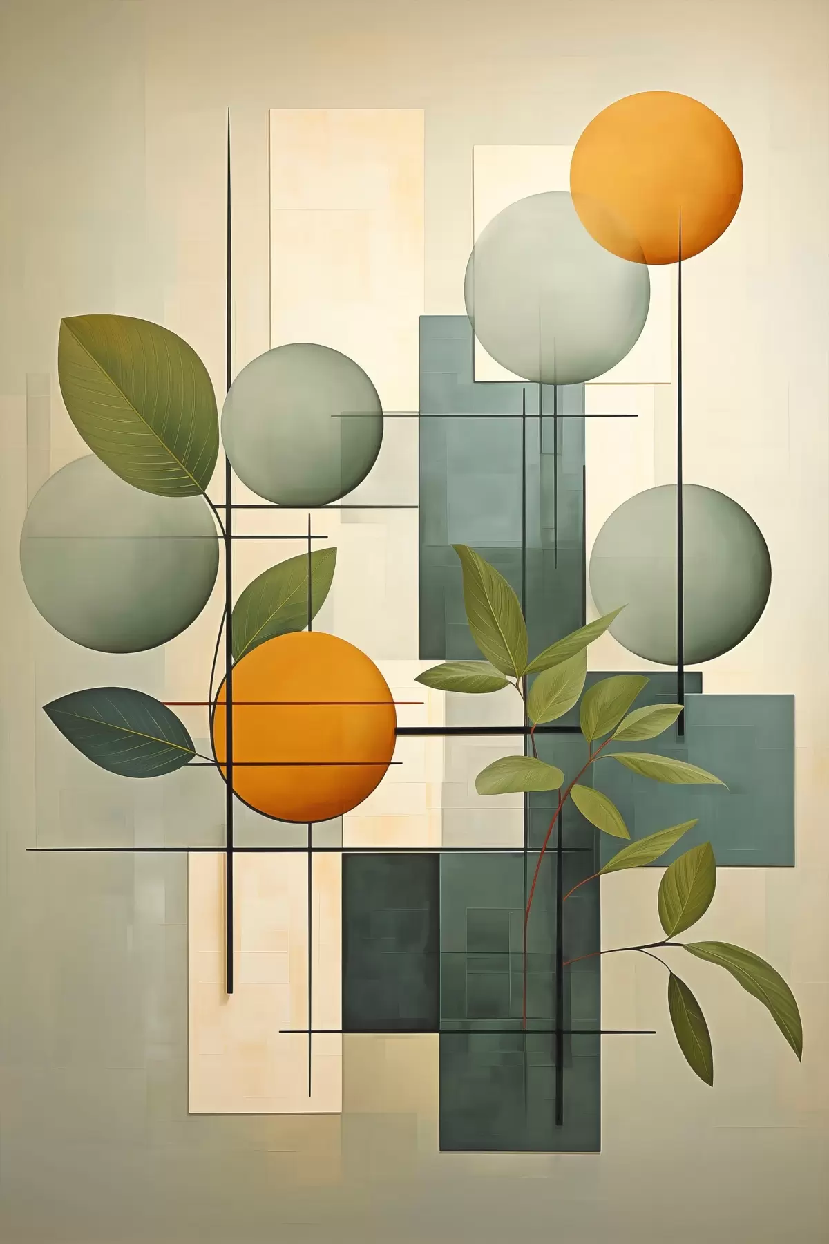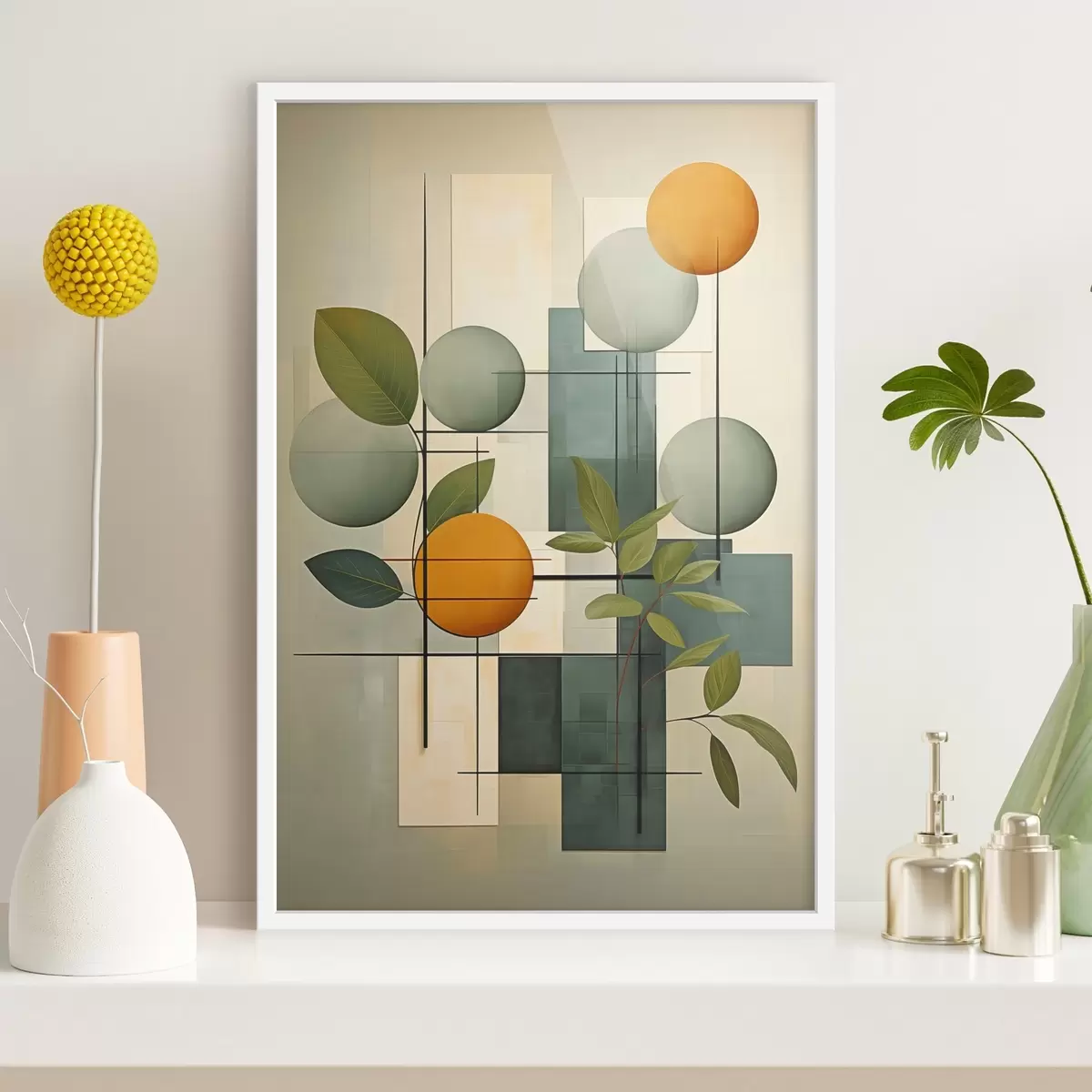 Постер на стіну Геометрична абстракція з рослинами Nr f46579