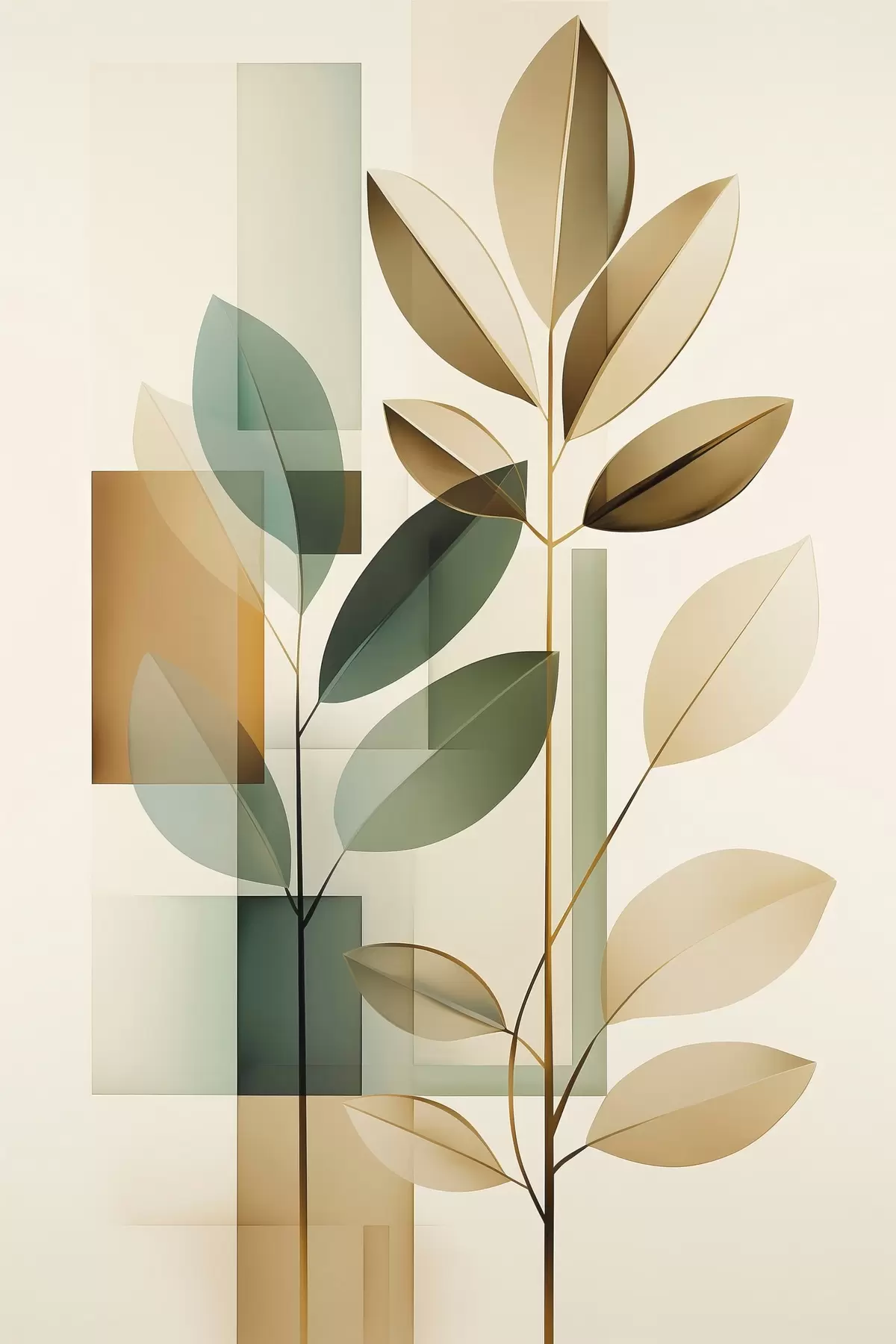 Постер на стіну Геометричні абстракції з листям Nr f46581