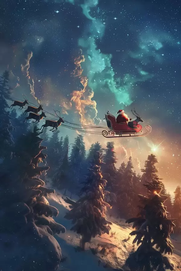 Постер на стіну Санта Клаус на оленях Nr f46602