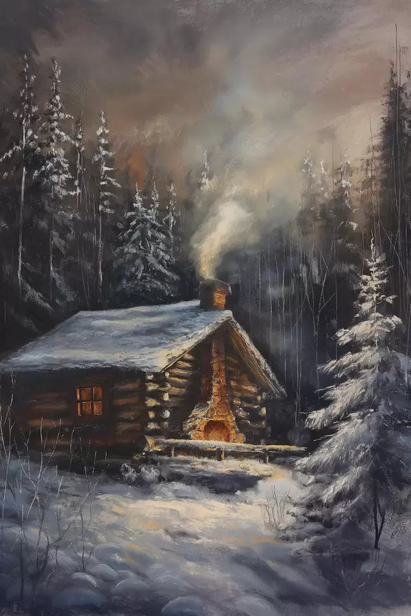 Постер на стіну Котедж у зимовому лісі Nr f46606