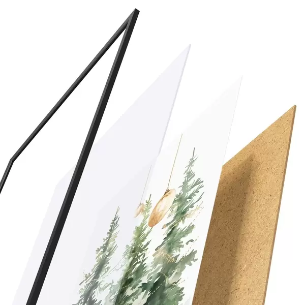 Постер складається з рами, оргскла, надрукованого зображення та підкладки з ДСП. Завдяки кріпленням на звороті плакат можна одразу ж повісити на стіну.