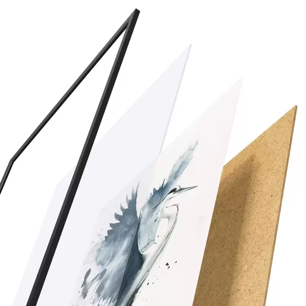 Постер складається з рами, оргскла, надрукованого зображення та підкладки з ДСП. Завдяки кріпленням на звороті плакат можна одразу ж повісити на стіну.