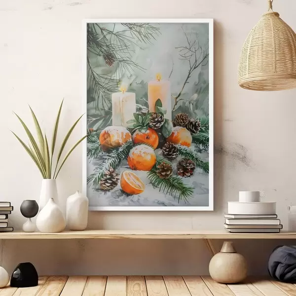 Постер на стіну Свічки, мандарини та соснові шишки Nr f46614